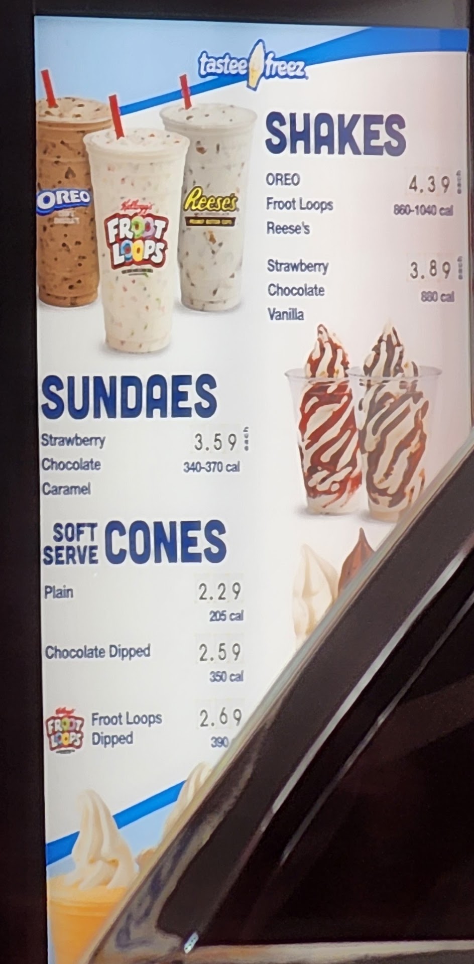 I sat in my parked car to eat. Depending on what you get, that could be a BAD idea. I rarely drink sodas, but it was OK for what it was. The small fries were the thin kind which I prefer but were NOT crispy, fairly limp, VERY small portion, and zero seasoning/salt. They also were only slightly warm, as though prepared ahead of time before the crowd. My fault for not tasting before leaving.