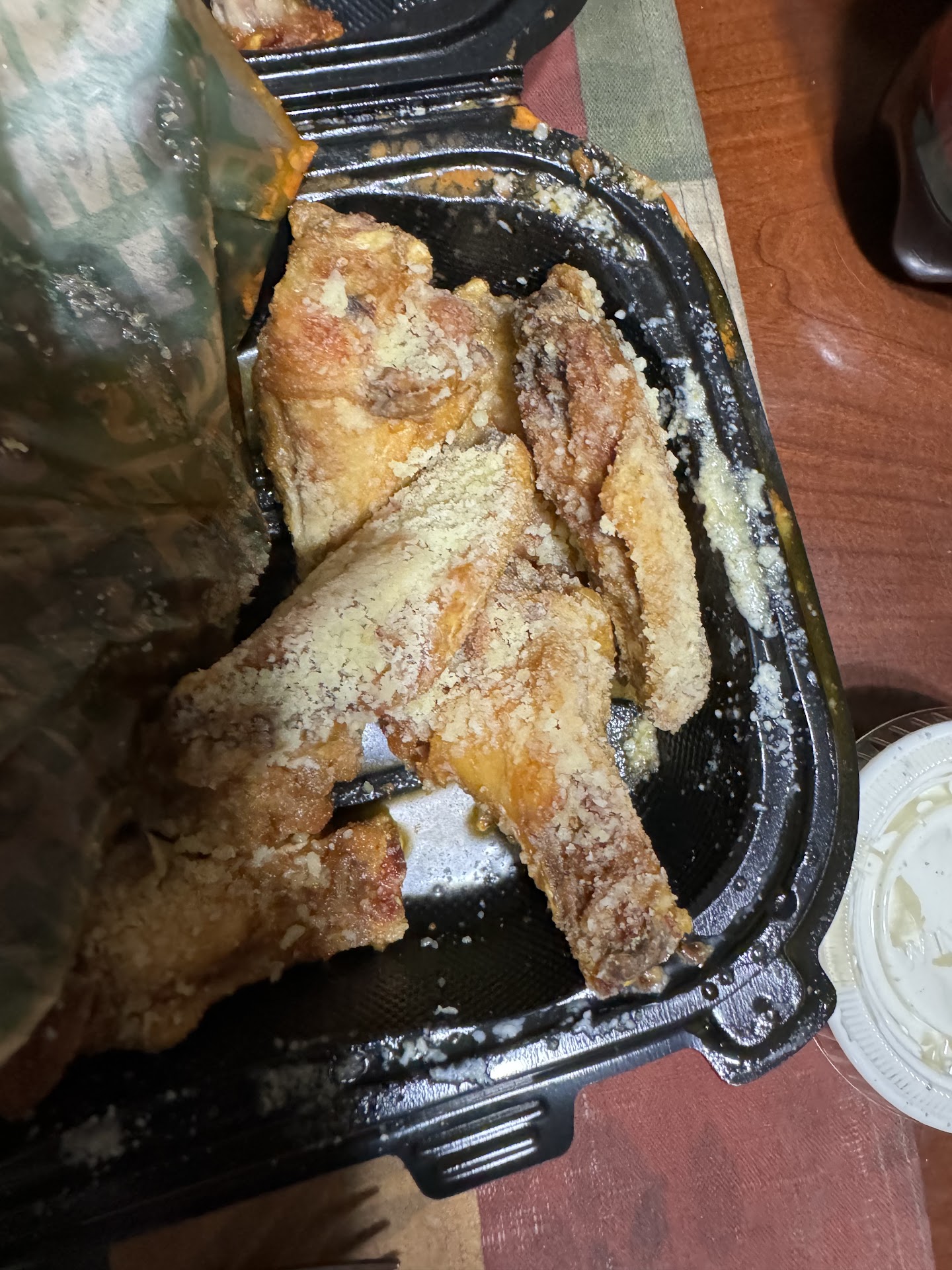 The workers there also seemed to act as if they didn't want to be there, even commented that "it must be nice to be on the other side of the counter" when they spoke to my son in-law. Half of the wings we got seemed old and dry, as If someone threw them back into the oil to reheat them for a couple minutes. BIG point is that Wingstop doesn't lable any of the wings. It is left up to the customer to figure out what wings are which flavor. Very inconvenient especially if you are feeding a big group that ordered different flavors..