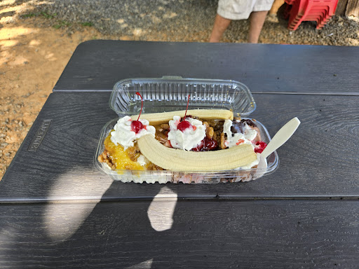 Read moreThis place was great! Blink and you'll miss it, but it's worth finding. The prices are incredibly reasonable and the portions are kinda huge - I got a single scoop cone, a double scoop cone, and a single scoop sundae for about $12 or so. They have a lot of flavors and options - the dark chocolate raspberry was 😍. The ladies working we're very friendly and patient while we figured out what we wanted. They have a small area with a few tables ( and kids chairs), and the parking area had lots of space. I believe they are only open during certain months, so run there...