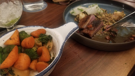 This is the first time I've felt like giving a standing ovation after a meal! I choose the Prime Rib served with au jus and horseradish cream and the Super Spud. My partner had the Barbecued Berkshire Pork Coppa. Then for dessert, we shared the puffed pastry surprise. Every bite of the dinner was delicious. The prime rib melted in my mouth. After a few bites of the potato, I pulled the dish closer to investigate the layers of flavor. It was masterfully constructed!