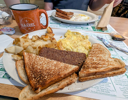 1st ever in 16yrs we ordered from the Barrel ... it was a takeout and was pleased our order was exactly like we asked for. The homefries where cooked perfectly little crispy outside just perfect .. we also had scraple also cooked perfectly .. we ordered 2 steak egg and cheese on hard rolls and the lady who took our order explained that the steak that normally comes with steak and egg platter wouldn't be as good on our breakfast sandwiches so she said she could make the sandwiches with steak they use like for cheesesteaks very very good and I was very happy and impressed she told me about the difference .. will definitely order again being it's so close Yesterday we saw a sign hanging about Lenten Specials so we will be looking into that for tomorrow being we haven't found a big fish fry that the firehouses or churches put on in the area ... my husband loves fried fish not me but we will give it a try .. just wondering about their Prime Rib they have now .. im a retired chef and any where I worked when we had Prime Rib night we made beautiful fresh Prime Rib and once it ran out for that evening it was done .. I've been to places that order it pre-made where they just sliced the size you like throw it on the grill or put in the Salamander aka broiler..places do this because Prime rib is pricey and if they don't sell alot it's a cheaper option.. I just can't see them selling Fresh Homemade Prime rib daily and selling out .. we go by there all the time and there are very few cars there .. Anyway I wish them the best and hope they will train there cooks staff to listen to owners and stay...