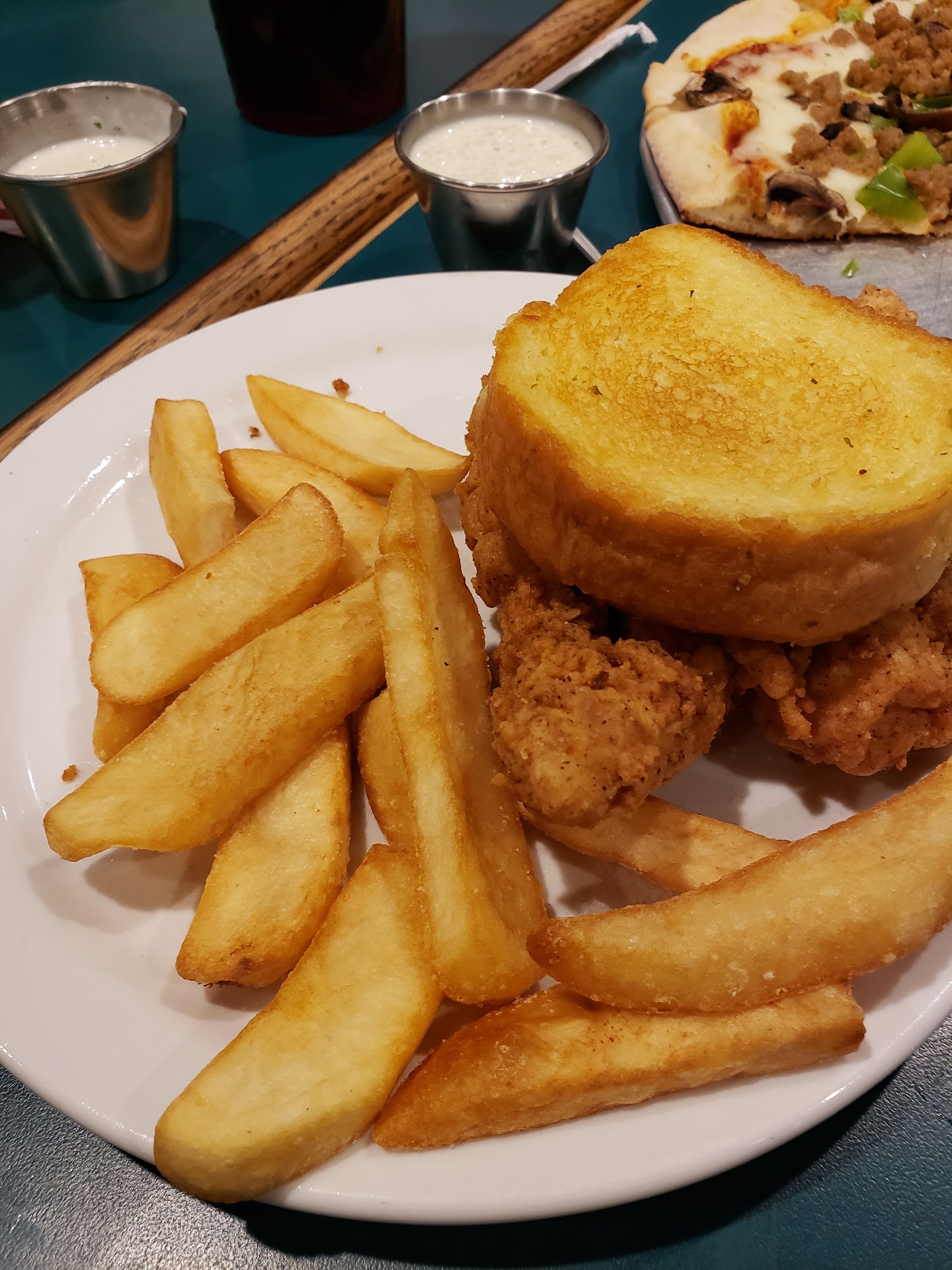 Read moreWe arrived at 7:30, thinking they closed at 9 per the times listed online, however they had temporary hours listed on the door that indicated they closed at 8. We asked if it was too late to get a table, and were told it was just fine. We sit down and order... and wait. And wait. And wait. During this time I had to go get a waitress to take my drink order twice. The coke that was ordered was completely flat and tasted as if it came out of a bottle. Finally after waiting almost an hour we tell the waitress we can't stay any longer. Miraculously our food arrives with the waitress telling us rudely "the kitchen apologizes they couldn't get the food out fast enough for you." Mind you, during the hour we were there, not one person checked on us, we had to go ask for refills and there was not one apology about the wait or lack of service. And again, we had no problem going somewhere else but they continued to seat people after we arrived. Let's get to the food. To our dismay the pizza was completely undercooked (I'm guessing they yanked it out of the oven when they heard we were leaving), the chicken tenders were soggy, old, tough pieces of meat that had a funny taste, the steak fries had rotten parts. At this point we tell the waitress we're not going to eat the food and to bring us a check for the two coffees we had. She says she'll be right back and... we wait another fifteen minutes before finally going up to the counter to cash out. They had no problem charging us for the drinks - non alcoholic - after the atrocious experience we had. We never received an apology, nothing, just a bill. Im not sure if it was an off night but our experience was the wait staff and kitchen do not care about the customers and if you want to be treated like a burden this is the...