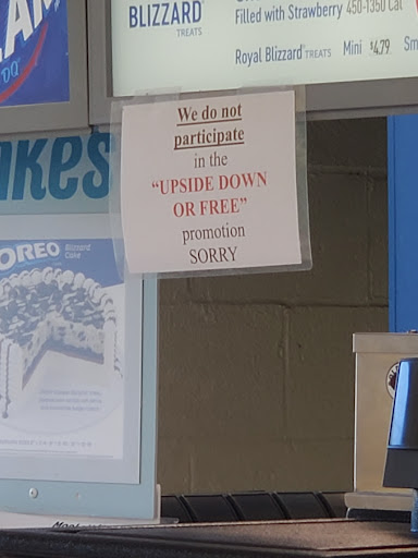 Read moreWe went last night to grab a cake for my son's birthday and this is by far the worst dairy queen I've ever been too!! The woman im guessing she was the manager was very rude and snarky while she was waiting on us. We had seen a cake on line for what we thought was there so when we get there we find out they don't have it but also it takes 2 days to order a cake w anything on it SOOO apparently you can only choose from the options in the case which is fine but you don't have to be rude. I have had alot of experience w a few others and they usually are happy to throw one of their pictures on a cake for you as long as they're not busy. You could tell the poor girls working there are scared of her it made me feel bad you should enjoy a job at an ice cream place. I won't go back just bc of how she talked to us and other customers. The cake was horrible to It had no crunches and the fridge never melted right or whatever it was hard and...