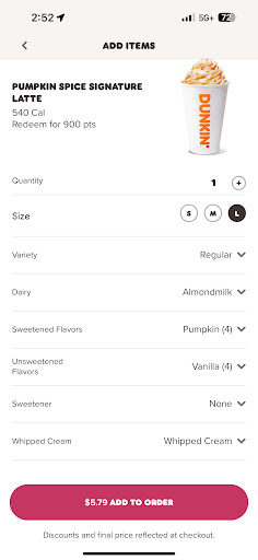 I love Dunkin,' always have. This one has a nice interior, and awesome staff, but it's more expensive than the other franchise locations in the area. Tell me why this location charges 10¢ per pump for both Swirls and flavor shots?! That's excessively greedy! I love a good medium iced coffee with cream, French Vanilla Swirl, and blueberry shot. I'm unhappy having to pay an extra 60¢ a cup to get that flavor combo. Even with the $5 and $6 combo promotions, you have to pay extra per pump for Swirls and flavor shots. A pup cup here costs more than a dollar. Donuts and pastries cost more here than at other Dunkin' locations, too. I love the staff here (they're always super sweet), but I can't stand being nickeled and dimed. For that reason, I'll usually drive a little further to visit the New Oxford location instead. Ownership, are you listening? Quit...