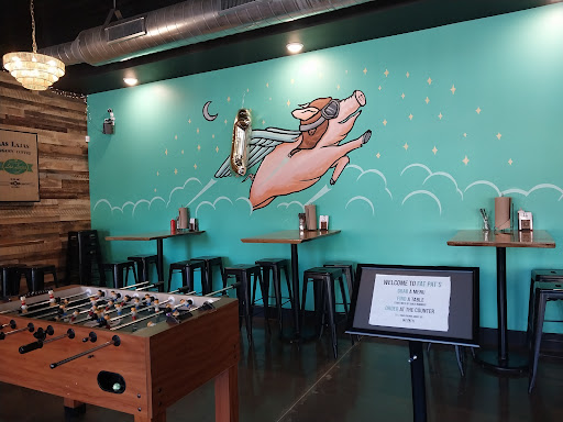 I have very mix feelings. At first it's on an addition to an IGA with 3 different business signs... because it's 3 different businesses! A micro brew house, a Cafe, and a BBQ joint. So, just a bit confused, just pulling into the parking lot. Then when entering it's a really clean an esthetically pleasing establishment... with more chaos :( I learned with little help from the staff that I take a menu from next to the register and order at the same register with tables to close and a line at least 5 deep for the 45 mins I was there. You're handed a number, you seat yourself and the food arrives before your seat is warm! I had the brisket. Moist, TENDER, and flavorful. The only thing it needed was a bun not from the IGA. Their in house BBQ sauce is unique and enjoyable and their fresh hand cut fries are perfect, coated in thus said sauce! The other ever quickly revolving guest were seemingly local and enjoyed themselves as much as the in house ales, lagers, and IPA they were imbibing. I prefer the Spring Grove cream soda. I'd be willing to bet that all those talented women working there can make a cup of coffee! I'll be back for 1 of those and a pull...