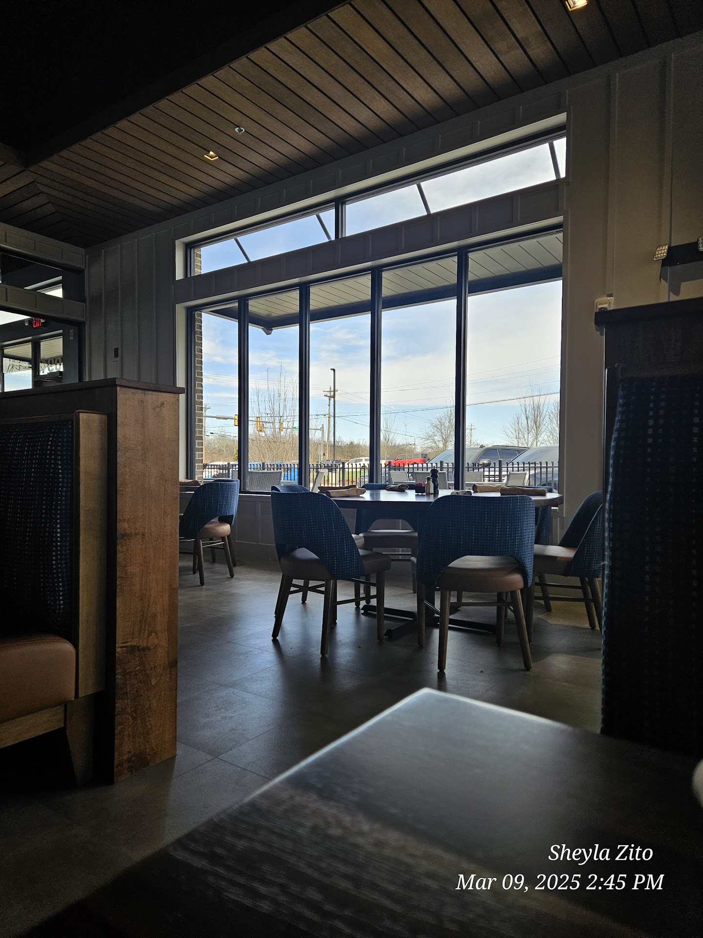 My frustrated first visit: Almost 3 stars...but saved by the service... After trying to dine in for 3 times and a wait list of over 45min, (with no way to join a wait list online either), finally Sunday 2:38pm we were able to walk in. It is all new and nice. Their menu apparently assume hot/spice food as standard (without any notice or warning), which is not the case for us. The Spinach dip was much hotter than mild to our taste and spolied the experience for us. The coffee tasted and looked "old". I ordered the basil pasta with chicken breast. Pasta and sauce were good, but the sliced pieces of chicken were cold, like 'just got out of the fridge' cold. My husband asked the waiter, Taylor if it was supposed to be cold, he affirmed. But in a few minutes came back and took my plate. My husband ordered the Ribeye, which was blackened (and he had no idea or wouldn't have ordered). The salad he ordered with his food was brought only halfway he finishing his meal (after we reminded then), by the time I got my fresh pasta, this time fresh grilled chicken and fresh sauce. The coffee was replaced 30 min after we informed it was not good. There was an accident (not caused by us) with the cream brought in a disposable container. Our server was very attentive to our needs, kept bringing us fresh water. As I said, because of him, 4 stars or I would have easily rated ⭐️⭐️⭐️ The restaurant was NOT crazily full, perhaps 65% which does not justify in my opinion the 'not met 'basic culinary standards. Again, this rating is based on our experience, and my view. By the way, the Prairie cheesecake was good (though I tasted the butter more than I wanted to). The bread and butter...