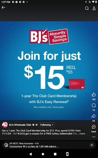 I got the BJ's PLUS membership- 5% back and 15 cents a gallon discount for gas. It will pay for itself.