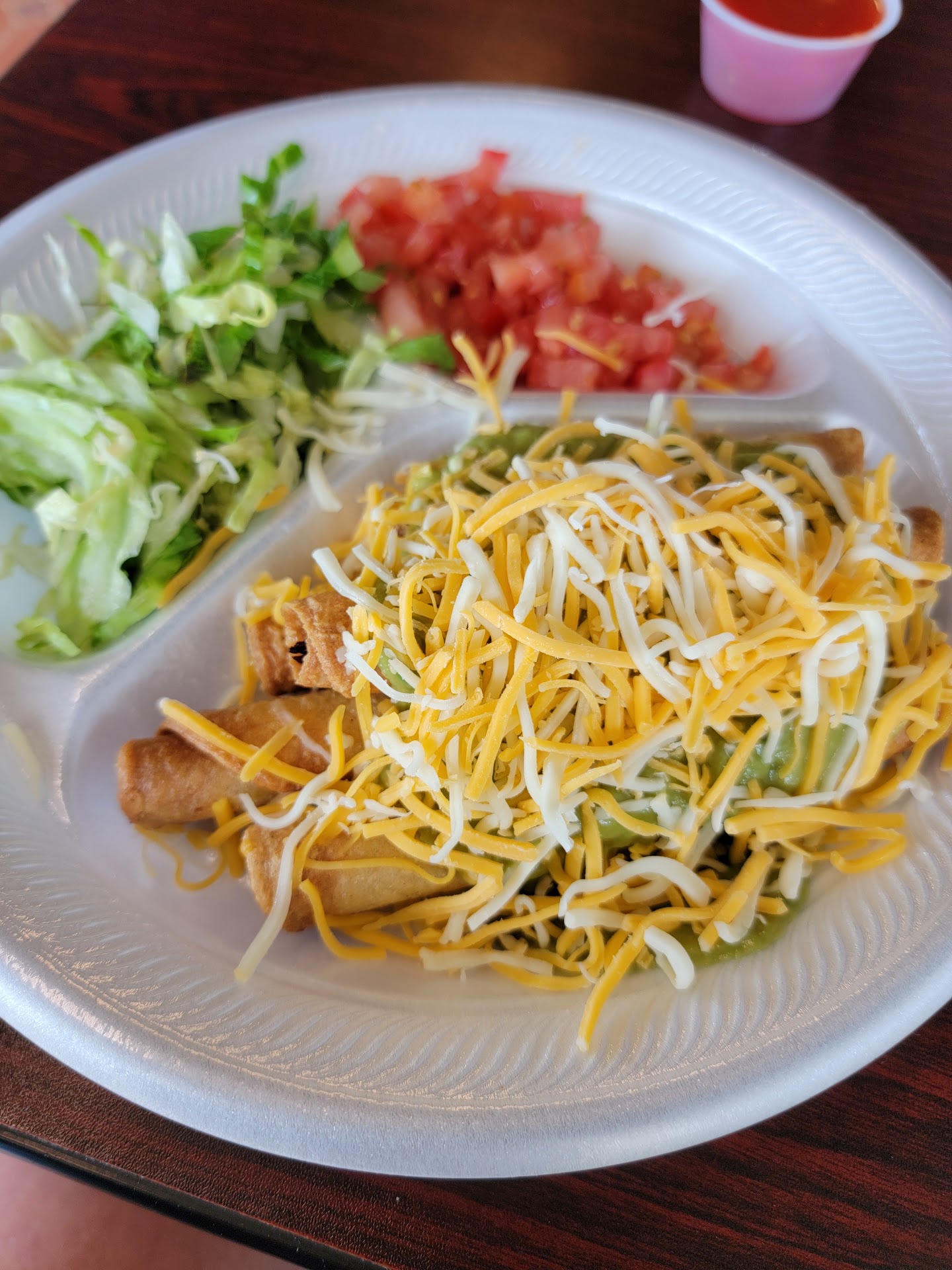 So here I am after a year, maybe more, giving them a second chance because my first left my taste buds in not such a good place. I ordered "rolled tacos" I know them as taquitos. They came out with diced tomatoes and lettuce on the side, which I found interesting, and unnecessary. The guacamole was thin and tasted old, like it came from a tub of prepackaged guac- not so crazy about that flavor, so I scraped it all off. The "chips salsa" from the salsa bar was ok and gave the rolled tacos some flavor- but they were still pretty plain.