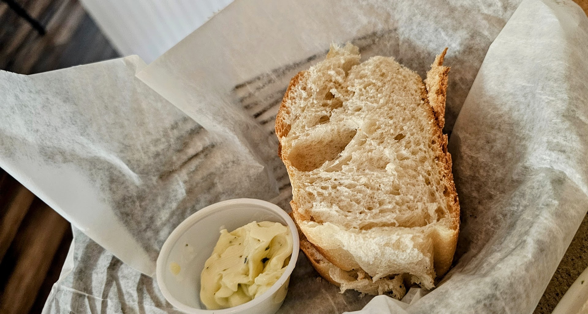 We ordered the fig and goat cheese bruschetta, I got the Truffle Gnocchi and my husband got the special, a Veal & Wild Boar Bolognese. We received a basket of freshly baked bread with this butter, which tasted like it had rosemary and basil in it...OMG, i could just eat the bread and butter all day!