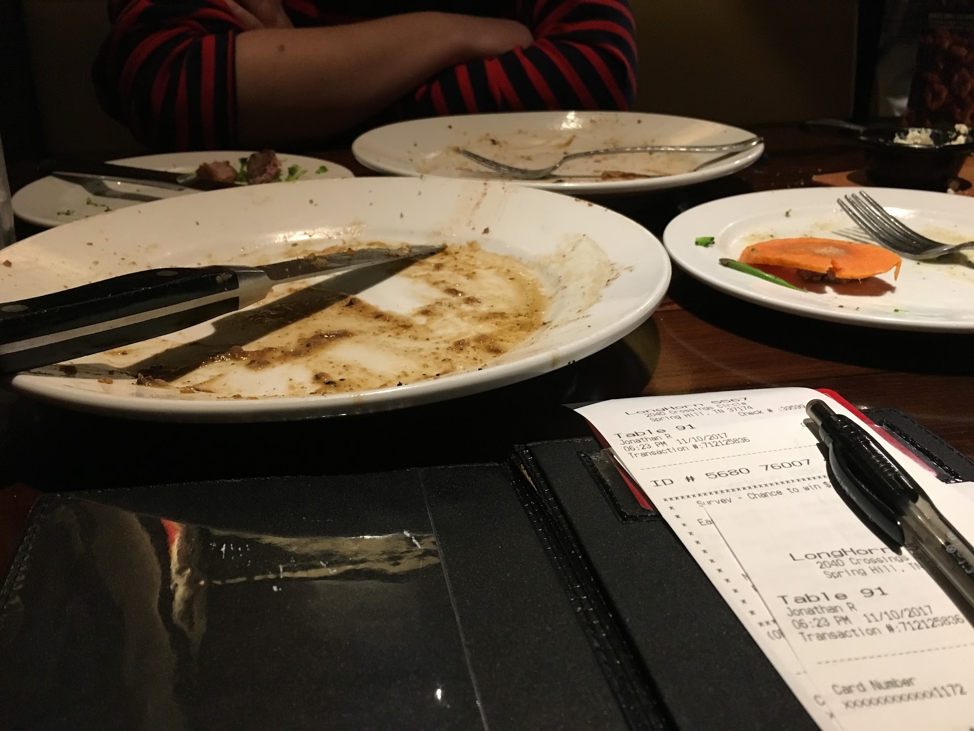 Read moreI wanted to give my husband a night out. He decided on this place. He waited a movie and dinner in spring hill tn. So this was our first time at a longhorn steakhouse. I just wanted something light to eat so I didn't think that I could go wrong with just a soup and salad. The waiter did tell me that he would choose potatoe soup over the clam chowder. But leave it to me to choose the clam chowder it was really nasty and I take alot of pride in my cooking so I'm not for insulting anyone. But I've had better out of a can and a cheap can at that. I didn't want to say anything so I just dealt with it especially after my husband got his order and he forgot to tell the waiter to leave off the sour cream. So when he brought him another baked potatoe. And my husband asked for extra butter. The waiter acted funny like it bothered him to bring exter butter. It took him so long I just thought and handed my husband the butter off the bread tray. The waiter never come by to and offere refills or dessert I had to hunt him down to order a dessert. I give him a pretty good tip. And still wonder why. Because half way home my husband said the baked potatoe had just been microwaved he tought and wasn't that good at all. He said you can't really mess up on a steak and I disagreed with that. But he said the $28 bone in ribeye was just okay which I tried a small piece and no it wasn't that great nether . I told him at least he didn't have the nasty clam chowder. Least to say after spending $60, neither one of us pleased, we won't be going back to the longhorn steakhouse. So...