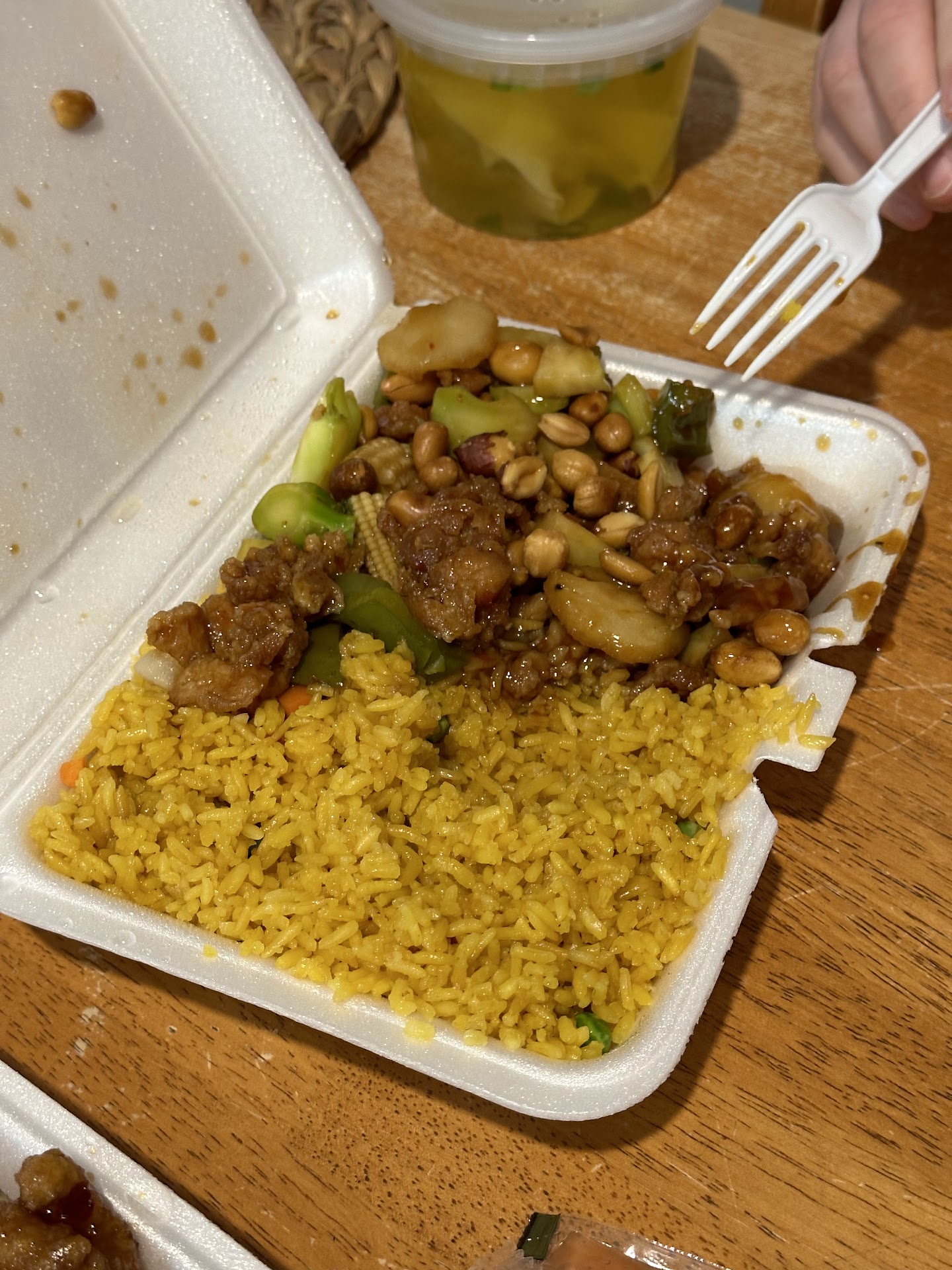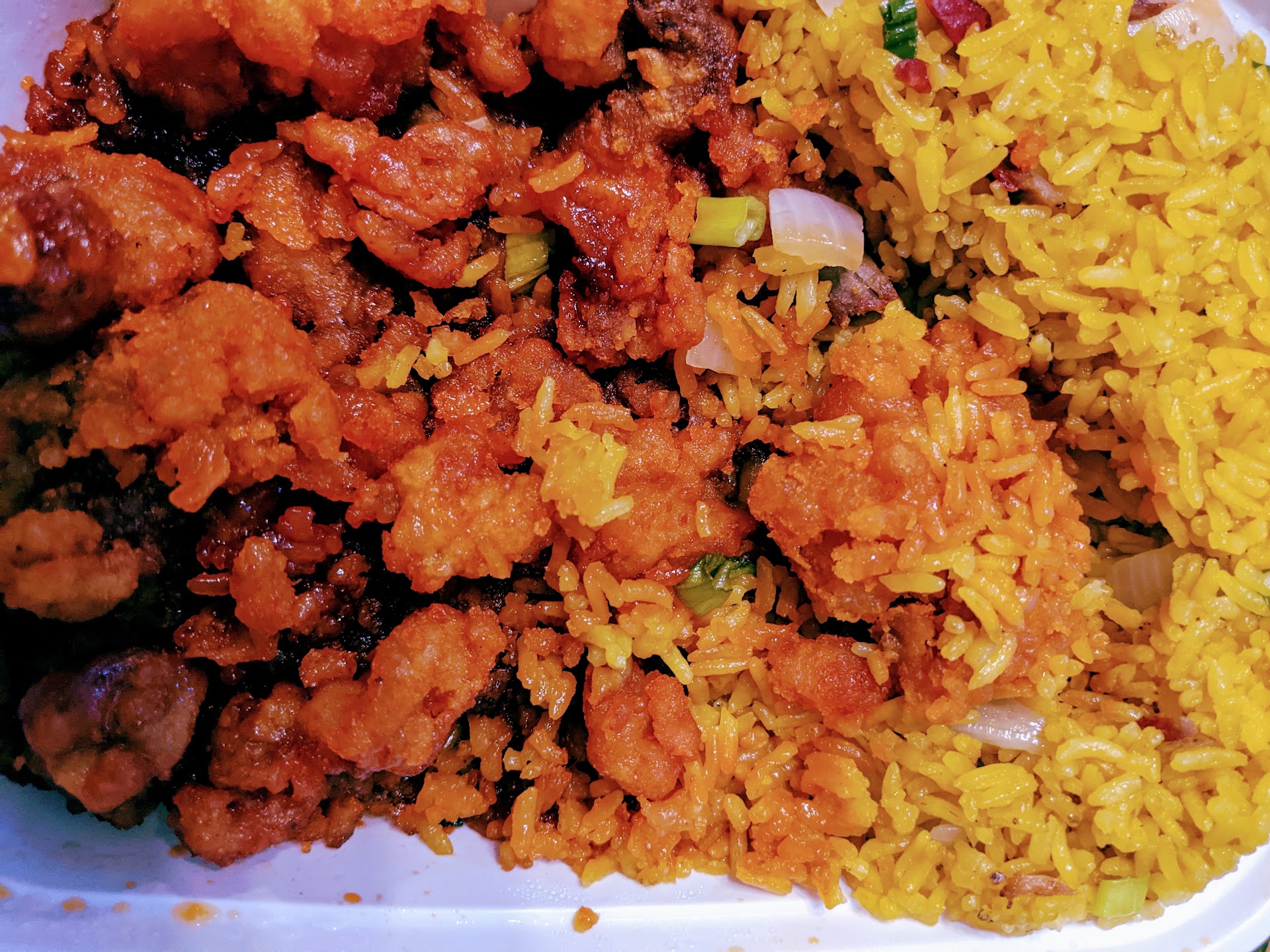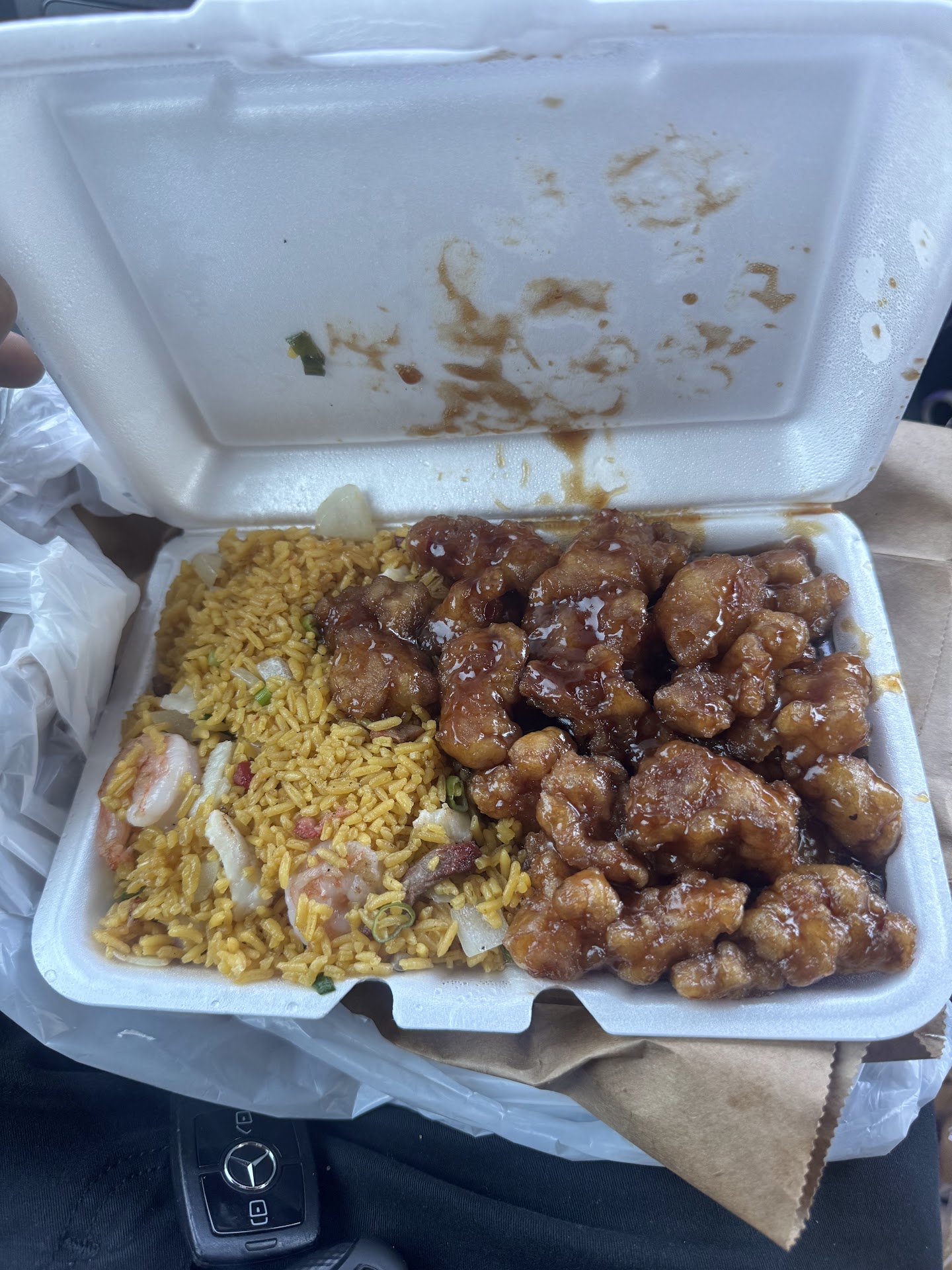 I don't understand the high rating on this place. I guess everyone has bad days. I ordered two quarts of Lo mein. I open my order at home and think to myself that the containers look small. I looked at the bottom and it clearly says 24oz. The Lo mein was also mushy and bland I was told I would get one pint of white rice with my veggie order. The container appears to be half of that. I sound cheap whining about white rice, but I planned on the amount for my kids. It's about the inconvenience of having to cook more rice at home. The Honey chicken was a weird orange pile of dry chicken scraps and soggy fallen-off bits of fried mush like a poorly executed bloomin' onion. Sadness ensued for all...