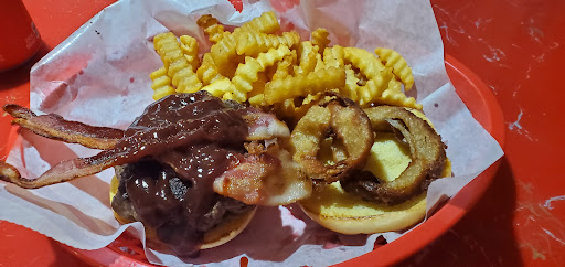 Burger has a handmade patty and was cooked to the requested temp of well-done but stayed juicy. It was well-seasoned and through some miracle the onion rings on the burger stayed crispy through the whole meal, despite sitting in delicious barbecue sauce. The crinkle fries were super crisp and fluffy on the inside.