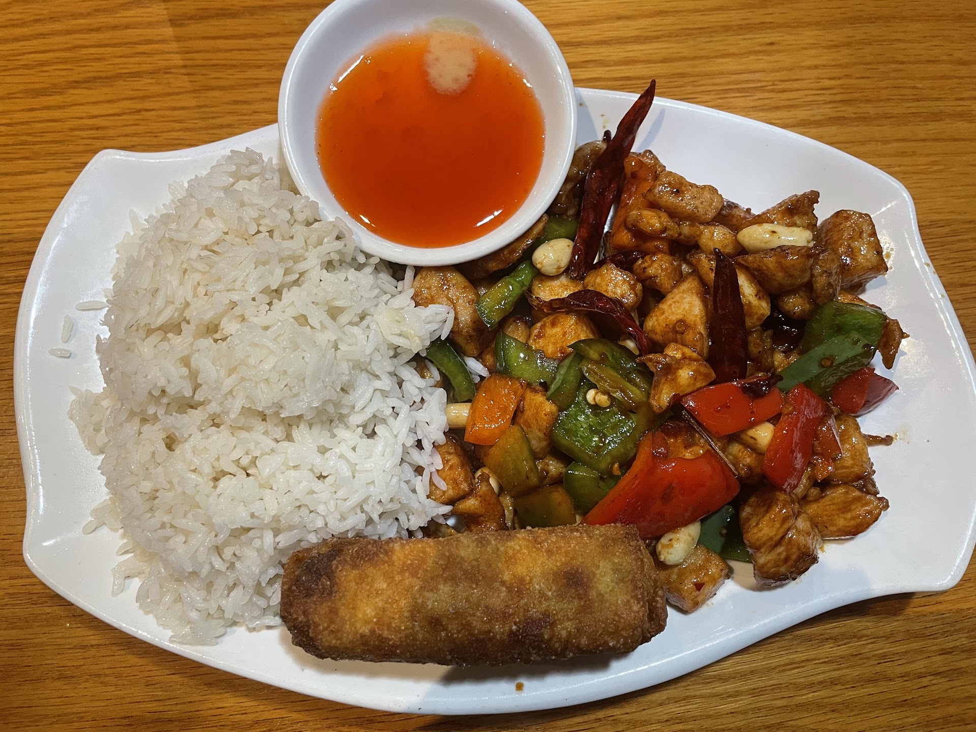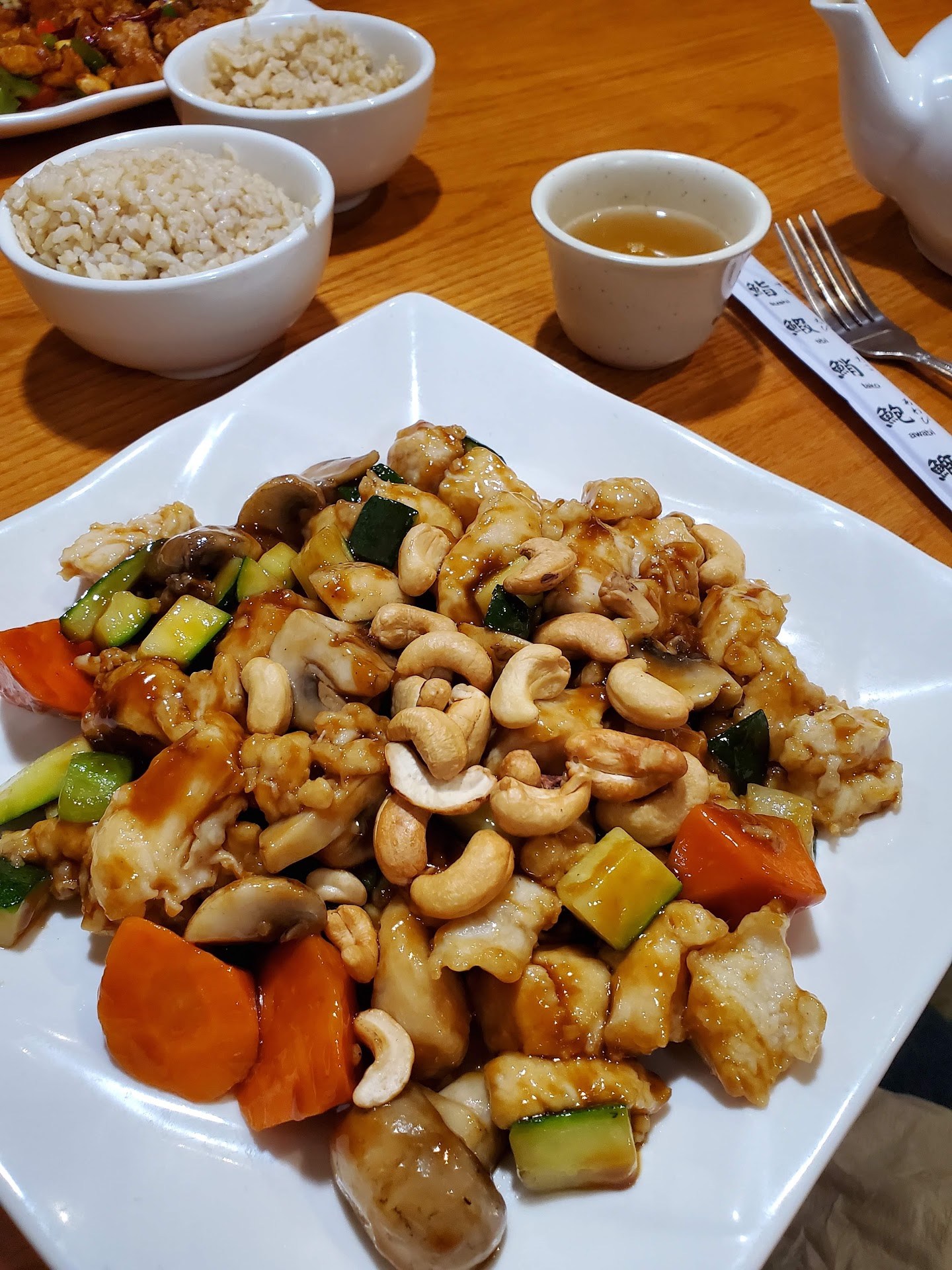 Really craving some good Asian food and been anxious to try this new find in Spring Hill. Heard good things, so ready to be thrilled. I had a little bit wary when I realized it was situated in the middle of a small cluster of businesses, much like hundreds of other Chinese take out joints. Hopefully, the food wouldn't disappoint! Upon entering the establishment, I noted the upscale dining furniture and soft lighting, very nicely done! We seated ourselves and chose a booth away from the front door but not to close to kitchen. The waiter pleasantly greeted us with menus and took our beverage order,, and promptly returned with them and a complimentary appetizer of spiced Cucumber relish and peanuts. Delish! We ordered Chicken with cashews and Kung Pao chicken and a spring rolls. Each dish arrived piping hot accompanied with large portions of brown rice. The food didn't disappoint- each entrée was as good as they looked! My only disappointment with this restaurant was the noise. Because of the high ceiling, voices were amplified, making it very noisy inside. Additionally, the entrance had a large fan above the door that "whoosed" at every opening. And because deliveries came in and out of this door as well as customer pickups, it only continued to add to the noise. It was difficult to carry on a decent conversation and have a pleasant meal. We will definitely be returning to this establishment and you...