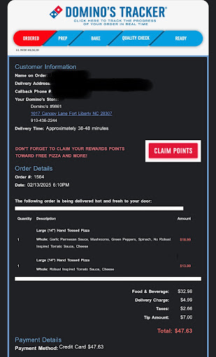 Read moreI've been picking up pizza occasionally here for quite some time. The staff is generally polite and the manager is friendly. Quality food every time and they've only messed up my order once. Definitely one of the better dominoes for sure. The carryout time is very, very fast from time of order.