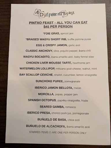 The first time I tried A Different Beast, it was a group of friends, two from the UK (both having vacationed in Spain & and one of them lived in Spain for a spell). I asked them how it compared to the pintxos in Spain, and he said they were on point.