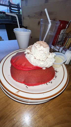Read moreRed Velvet Pancakes: Fluffy great taste, cream has an ice cream texture to it, hit it with a nice sweet glaze on top it’s a “Must Try” -Ranchero Omelette: it’s stuffed with a green pepper, chicken, cheese and smothered with green chili sauce which has the right amount of heat with home potatoes that were cooked just right and not hard or dry. -Club Sandwich: American Cheese 🧀, packed with Turkey, ham, fresh vegetables and crispy bacon on white bread with seasoned fries 🍟. -Country Benedict: is just a biscuits and gravy style with eggs poach on top but eggs were fully cooked and not poached. Not too crazy about it. -Mushroom & Swiss Burger: Nothing special about it mushroom taste was dull would’ve love if they’d were season and some sautéed onions with it. Restrooms were clean so that means kitchen is clean Server was nice Bill was $66.79 with no fountain drinks