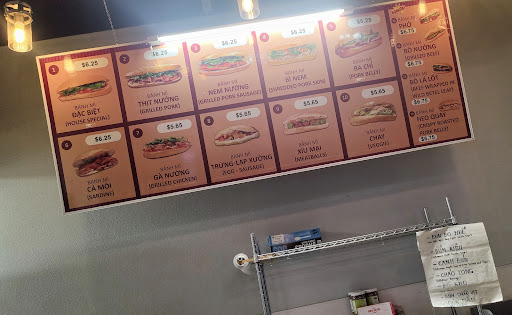 We placed a phone order for pick-up. Upon arrival, no one was at the front, so we browsed the fridge and other displayed food items. After waiting a while, we called out to the kitchen, as it seemed only one person was working. The payment process was quick and easy. Fortunately, they accepted cards and offered a buy 5, get 1 free banh mi deal. Each sandwich was labeled and numbered, which was very helpful.