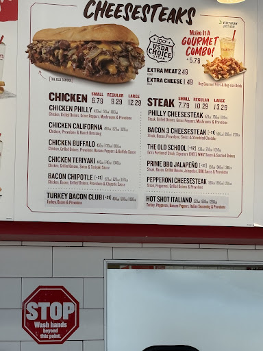 Read moreIt's like the workers are being told to skimp on food. There's potential here to be a good place but the portions don't match the price. The product, ie the bread and fry tray LOOK like they should be more but the amount doesn't fit the container. I got the original cheese steak and it had like 2 pieces of green pepper that was al dente and I didn't even see any onions. This is not a dish where these ingredients should be crisp. Plus the amount of steak was very light. The fries were also barely topped off the small container. I went through the drive thru and the girl was nice when taking my money but she gave my food and ran like she didn't want me to say anything after seeing the order. I had to wait and ask for ketchup that I could see her first only want to give me 2 packets and then change her mind and give me 3. That tells me they are being told to skimp as much...
