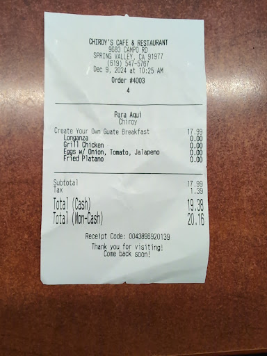 Read moreI had a nice breakfast here at Chiroy's Cafe new location in Spring Valley or Casa de Oro in Campo Road. I had the trio of breakfast tacos plate. You get to choose your protein for your tacos and sides for $12.99 plus tax, and $3.49 plus tax for regular coffee. I had hash browns and black beans on the side.
