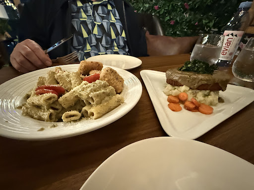 We decided to order the steak and potatoes dish and the pesto pasta with tofu. Both dishes tasted great. One minor downside was that both dishes had elements that weren’t mentioned in the menu. Tomatoes in the case of the pasta, onions in the mashed potatoes. I don’t enjoy either so skipped the potatoes and let my wife tackle the tomatoes :) That aside, the pasta sauce was outstanding, the tofu breading was crispy and well seasoned. The plant steak was one of the best textures and tastes of plant based meat I have experienced yet.