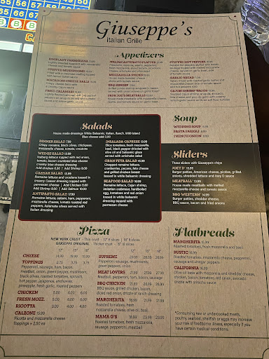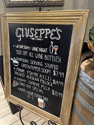 Read moreNice experience at Giuseppeâs. The location is set in a nice part of town and has easily accessible parking. Upon getting to the location we were immediately sat and provided with our drinks. Drinks are a little pricier ($3.50) for fountains; however, there are unlimited refills. Starting with the French Onion I would say its unimpressive, but it does warm you up. The onions are cut too thickly and thereâs simply too many of them. The taste is pleasing but the consistency is slightly watery despite the heaps of onion. We then ordered the rustic pizza, calzone, and fish fry. The pizza was good, the crust was mad perfectly and beats most Italian places on the strip. I would recommend keeping the tomatoes off the pizza as it somewhat interferes with the taste. We were absolutely astounded by the calzone, it was HUGE!! (Included pictures below). The only issue is that the waiter did not tell us about the size of the thing, nor that each topping inside costs extra. The bread yet again was perfect; however I wish I chose different toppings as the mushrooms and onions were slightly underdone. The fish fry is a fantastic deal as it is all you can eat for the fish! (All you can eat fish fry is only on Fridays) Overall we experienced an enjoyable meal. Would recommend coming here as a local.