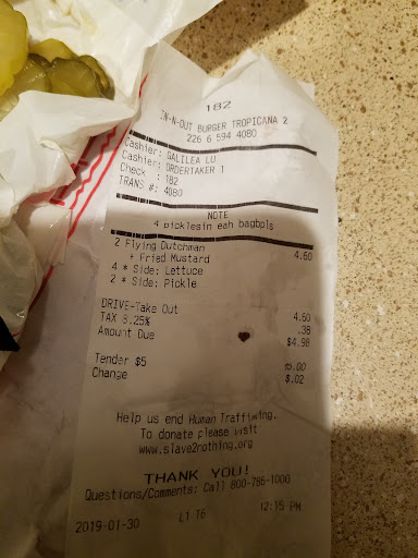 Read moreI love In-N-Out, its always my first stop anytime I visit anywhere on the west coast. The employees are always friendly and take your order quickly. The drive-thru lines seem to always wrap around the parking lot but if your willing to go inside you can be eating your food in 5-10 minutes. For anyone visiting for the first time, check out the secret menu online, theres about twice as many things to order as available as shown on the normal menu. I myself get a "4x4 animal style" which is a cheeseburger with 4 patties and 4 slices of cheese, secret sauce and grilled onions. As well ill order "animal style fries well done" which is an order of fries fried twice and than covered in cheese, special sauce and grilled onions. If you've ever tried their fries and thought they were soggy give them a second chance by trying them well done. It makes them crispy and worth eating...