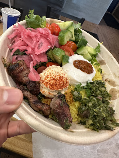 I usually go to a local location for gyros that's been here since the 70's , but I like to give others a try . The gyro was very good and tender , not dry at all . The sauce is also very good . The fries are skinny and I really didn't care for them . Next time I will try a bowl or plate with the rice . They also sell skewers which I will also try again later . They sell some desserts like baklava .