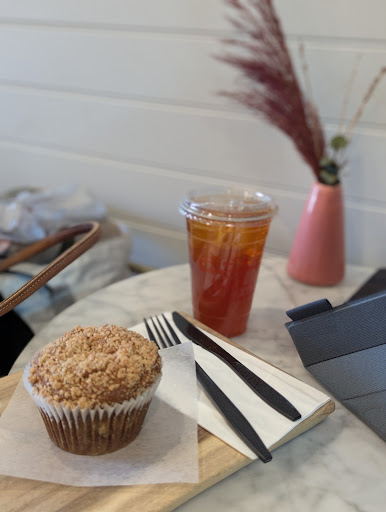 SLOW BREW BLACK ICED TEA $4.5 I got it lightly sweetened. VEGAN COCONUT BANANA MUFFIN $6.50