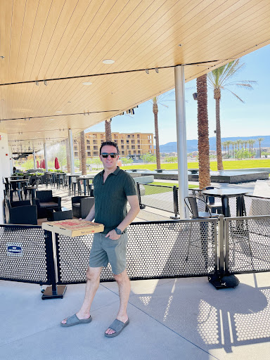 The environment is really chill as you can sit anywhere you'd like, including a couple of couches which is pretty comfortable. We brought our dog a few times so we had to sit outside, but the outside is pretty spacious as well.