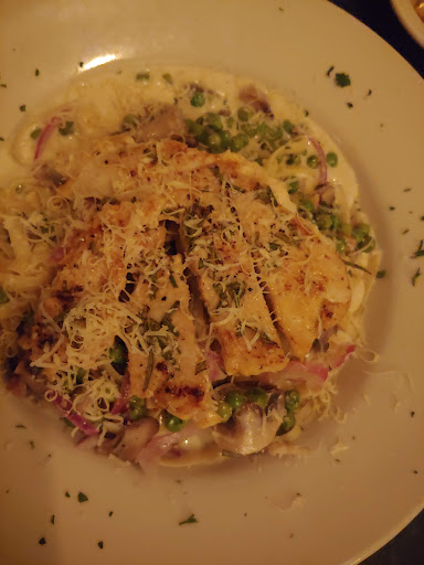 I was out with a small group and we started off by ordering a bottle of wine, some Ruffino Chianti of course “Saluti”. What good Italian restaurant review is complete without throwin in some Italiano! After some small talk and wine we ordered our entrees. I chose Mamma’s Pasta which is described (direct from the menu): Fettuccini, mushrooms, red onions, walnuts and peas tossed in a fresh lemon black pepper rosemary cream sauce topped with a grilled chicken breast. This dish is very unique and uniquely delicious. The moment it hits your taste buds it takes your brain a second to process the flavor and then you will love it. I am not aware of a similar dish available elsewhere and I highly recommend this dish if you have the opportunity to eat at Verucchi’s. Everyone I was with enjoyed their meal and we all had a really good time. The only drawback was the time and the service was a bit shaky. I see Italian Restaurants as being a cut above most other genres in that the ambience, food and service should be a cut above. Leaving tables cluttered with plates and dirty napkins is unacceptable and I think that is something that should be tightened up.