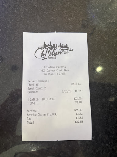 Read moreI’m from Chicago and moved to Houston 3 years ago. I’m past the craving for good Chicago food, but when I saw this, I had to go. I ordered 6 pizza’s, 2 cheese, 1 half sausage half pepperoni, the ChiTalian (the BOMMB) and a 1 sausage and onion, you knowww!!! And one sausage and cheese. We also order the 8 wings and 12 shrimp! I’m use to great fresh seafood out here in Houston so the shrimp was a 10! The mild sauce they had for the chicken and shrimp was fire and a 10. Taste just like Chicago mild sauce. The pizza, the pizza, let me say, the best pizza out here for Houston was so far, Rosatis and maybe Star pizza, if you’re really from Chicago. I mean Everyone eat little Ceasars or Dominos EVERYWHERE if you on a budget and got kids. So, the pizza was everything and more. Welcome to Chicago! This is on the level of Beggars and Italian Fiesta. Y’all southsiders know what I’m talking about! It was the BOMB! IF You want Chicago style pizza, please come hither! Not deep dish. Deep dish on a whole other level and side of our amazing pizza options in Chicago. This that thin crust lay her on thick option. Man, ok, I can talk about this all day. Now the pizza sizes themselves were just a little smaller than little Caesars. So that’s why we bought so many and we wanted more. The ingredients were fresh and the crust was lite. Seriously, this my pizza spot on. Like people say you can’t mess up a sand-which, but you can. Same with pizza. Houston messed up the word pizza but it found its bounce back with ChiTalian in H-Town!!! Go try it. Get it hot and fresh. I drove 30mins to pickup and it was still banging. Ok I’m done. Hands up to great idea and...