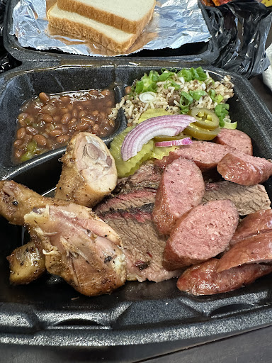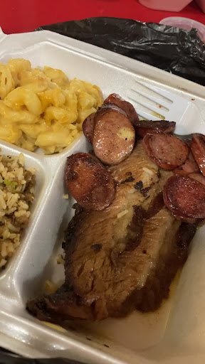 Barbecue is one of my favorite things to eat especially some Damn good barbecue, i’ve been eyeing this place for a minute and decided to finally pull up and this was a wise decision I ended up getting a 4 meat plate ( was sharing this) I got sausage, chicken, and brisket with two sides of my choice, which was the dirty rice and the baked beans. Also, I got one length of Boudin the sausage had a good snap what a good pepper flavored to it Chicken was ok not really much going on flavor wise, but it wasn’t bad now that brisket 🙌🏾🙌🏾 damn they don’t play about that brisket that was my favorite thing on the plate very soft, tender, jampacked with flavor moist just a solid delivery the dirty rice was also tasty. I like the fresh green onions they put in it and the baked beans were really good there was this distinctive taste to them almost gave me sort of an Asian zing if you will, so they know what they’re doing with the baked beans and the Boudin as well was delicious you have options with that one they have either regular or spicy we went ahead and went with the regular. The establishment was nice clean,customer service was great doesn’t look like they sell any alcohol or beer just your typical sodas and maybe Sweet tea & lemonades and the price for what we paid was outstanding for the amount of food that we got🙌🏾 so listen if you want some good barbecue just come here....