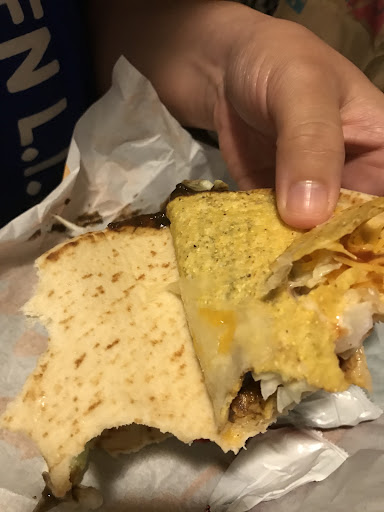 Read moreI like the vegetarian menu but sometimes the service sucks. Usually the males are super rude. Had one drop my credit card on the ground out the drive thru window and he just walked off. I didn't expect him to come out and pick it up but an offer or even just an apology would've been nice as I was riding with someone who is disabled and has more difficulty kneeling to the ground, unlike the young man who shut the window in our faces without so much as a peep. This was late in the evening too, so they weren't exactly swamped. Another of the young males didn't add mild sauce to my bag as asked, so I had to go in. Not realizing there was a selection of sauces on a bar I couldn't see, I asked this young man for mild sauce. He scooped two massive hands full at me (literally almost a sack full!) then wordlessly pointed to the bar as though I am stupid (the sauce bar is located alongside the back of a booth or wall and not easily seen from where I was standing at the registers). Just rude and disrespectful behavior from these children. The ladies have all been pleasant so far, however. The food is typical Taco Bell and I am pleased with the vegetarian menu options. Always yummy on that late night...