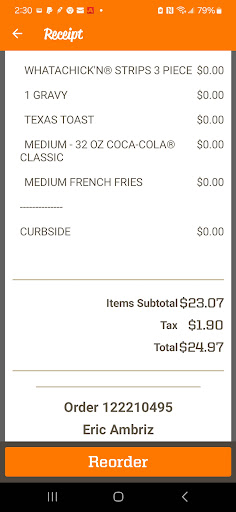 Read moreI went to this location on a late Monday night. The lady who took my order was nice. My friend and I waited nearly 45 minutes for my order. The person who brought the food out was flat out rude and disrespectful. Who says “huh” and “what” to customers? She gets on her earpiece asking who the food goes to. Comes back to my friend car and asks what I and asks what I ordered. She either is hard of hearing or rude because she asked again, “huh” and “what” to me. Then walks off laughing. Ten minutes later I get my food but it was different person who brought my food. She was a little nicer but bot much. I couldn’t get neither names who came to my friend car. Their name tags weren’t in eyesight. Please find out who the person was who was that came to my friend car first to have a talk about manners or fire her! My meal was a breakfast item that’s not listed below. Should you feel free to contact me, I am a Whataburger Rewards member, you can find my...