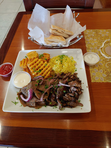 Read moreWe ordered the lamb chops and waffle fries and a side salad for each of us. The waiter said we each got two sides with the chops. We each were served the chops, a side salad and a portion of special rice. In addition we got two side orders of waffle fries and a side of the same salad. Dressings and sauces filled the table. Our diet cokes came in a tiny, globular glasses, holding maybe 3 ounces of beverage plus ice.