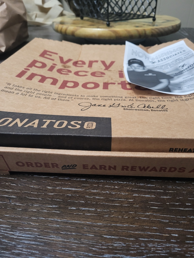 Read moreWhat a terrible delivery establishment. I order my food at 6:30 and the delivery finally came in at 8:30. I live 5 minutes from the store and work thirds. The food was cold and the driver first tried to deliver the food to the wrong house, on the opposite side of town. I talked to the manager and she said to contact door dash. I ORDERED THE FOOD DIRECTLY THROUGH THE STORE. NEVER ONCE ORDERED THROUGH DOORDASH. She said she would remake the food but I had to come and pick it up. Why did i pay extra for delivery? We ordered a salad, along with the pizza, that was never delivered. I will NEVER order again from this store and suggest you don’t either. Go to Pizza Hut, at least it’s hot and you won’t get the run around from DoorDash drivers. Donatos has lost a customer who has ordered for over 10 years. I wanted my money back but the best they could do was a in store credit, which I will never use because I will NEVER order Donatos from Springboro ever again. Get drivers or don’t offer delivery. It is that simple. What a trash store with trash management, spend your money elsewhere. You will get better food and better delivery from literally...