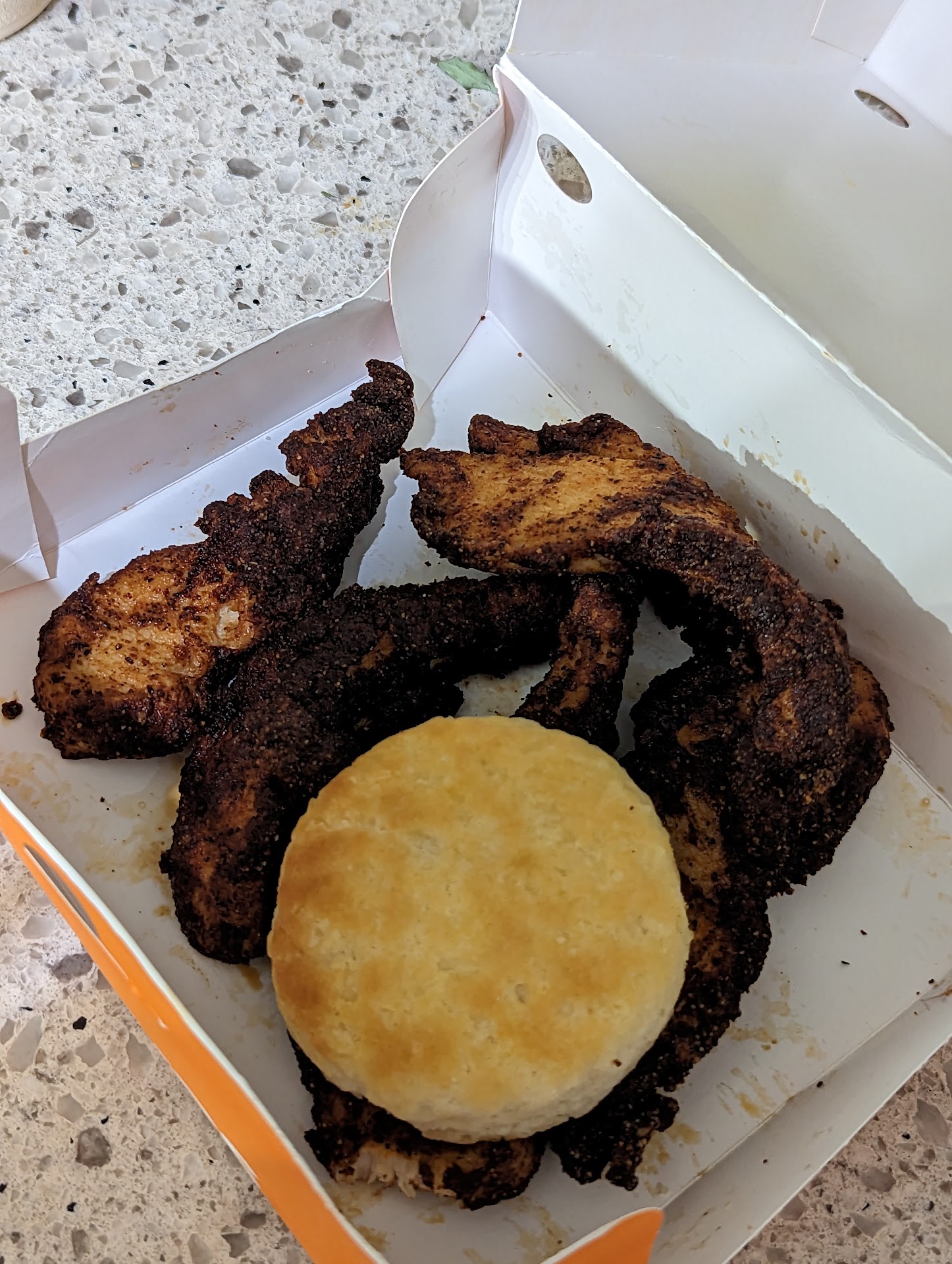 Wow, what a terrible experience! First, I am only rating this particular restaurant and giving it 3 stars because I have received mixed results in my visits there. Sometimes our visits have been as expected without issue, and then others are very slow....today was the worst however. It started with the useless app and web site ordering. The app would not work no matter what device we used so it will be going bye-bye. My son was finally able to get the we site to work after several tries (maybe this should have been a warning). My wife went to go pick up our order of 14 tenders and 2 large sides with 5 biscuits. Upon her arrival she given part of the order, but was ask to pull into a parking spot just ahead as they finalized the tenders part of the order. After a 20 minute wait she got out of the car and approached the window. The employee saw her coming - quickly looked behind - and then back out to my wife saying...."uh, the tenders are still not ready...we are going to get you some fresh ones" I think this really meant "oh no, we forgot". Another 10 minutes and she finally received the tenders. Since the order was paid online she was hoping for at least an apology or maybe a coupon. NOPE. Nothing, just a thank you as she was handed the bag. By this time the food that she was originally given was now cold. Needless to say, this was not...
