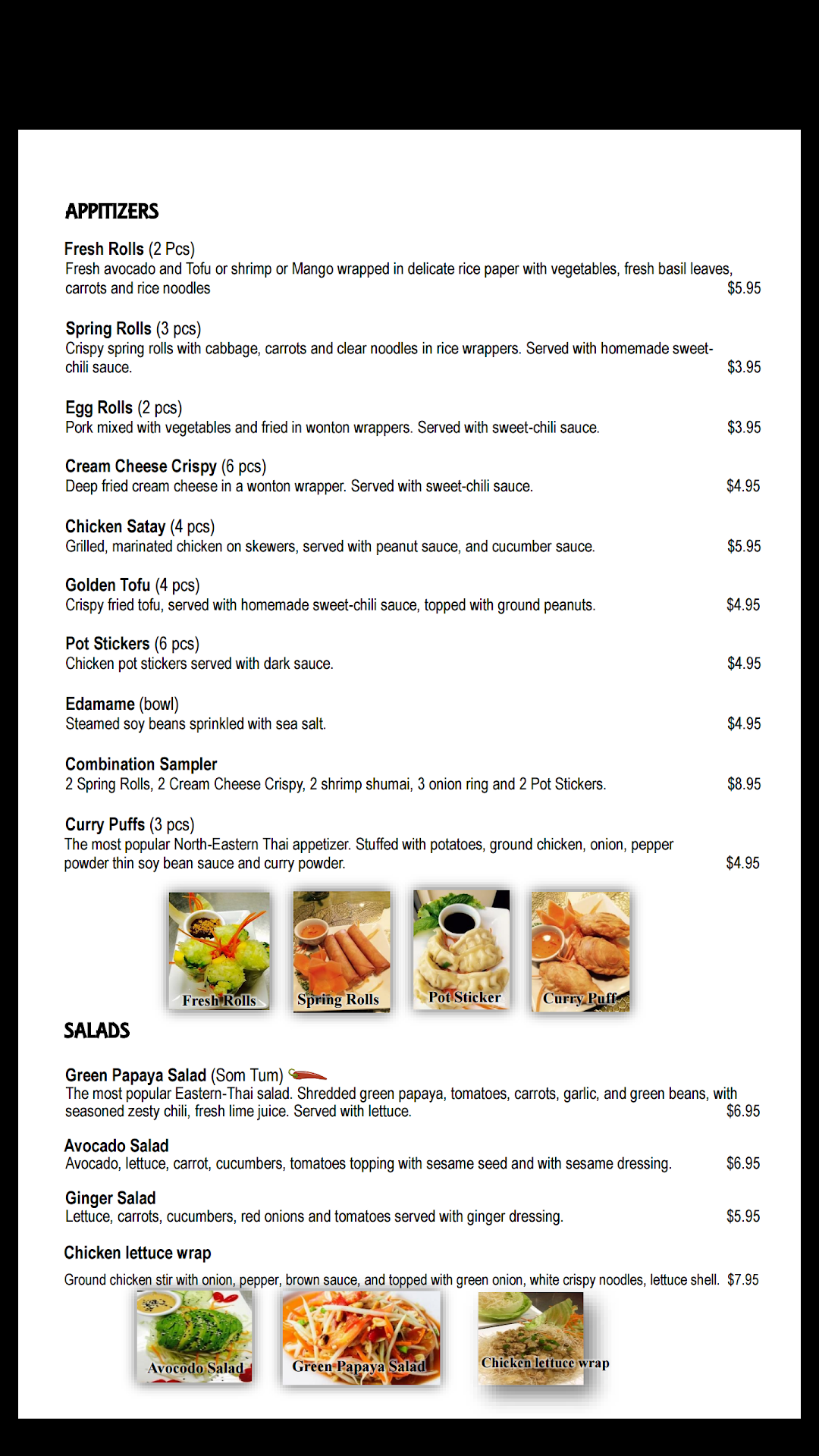 Edit: had a pretty rude and disrespectful experience here just now. I placed a carry out order for 7:21 pm. I got an email at 6:32 pm saying my order was ready for pickup. I arrive at 7:20 pm to find my order ready to go by the counter with the ticket saying it was made an hour ago. The food is barely warm to the touch but the man keeps saying it just came out of the back. I don't argue because they are my favorite Thai place. I check out my food in the car and it's not even the right meal! I walk back in ask about the meal. The guy opens up my food and says "yeah this isn't the crispy pad thai". He carries it to the back of the restaurant and comes back out saying this is how they make it no and hands it back to me. I ask about why the food is cold and the receipt says it was ready for pick up an hour early and he says the food is hot and there is no problem.