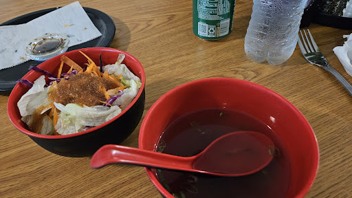 Our dinner finally has arrived, correct this time. Basically an hour and a half after we arrived. It's okay, nothing I would be going out of my way to come for again. I am not a Sushi 🍣 guy so I can't rate their Sushi. The Onion Soup 🍲 was outstanding! The salad was just not good.