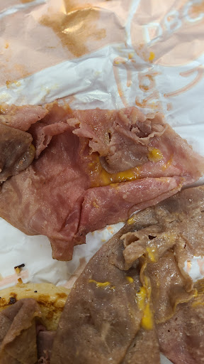 If I can give less I would. I visited this location Saturday February 4 around 8:30 pm. I decided to break down and try the new rib eye sandwich. The wait in the drive thru was long but I’m quite understanding when I know you maybe short help. My biggest pet peeve is as long as my food is correct and and hot. I’m good. The employee at who took the order at the window apologized several times for the wait. 15 minutes later I get my sandwich and I noticed how small it is. I opened it up and there was barely any meat in it the bun and meat was cold. I went in to get a refund and the manager had a attitude saying , you didn’t like it? I told him that sandwich isn’t worth 8:00. I never took a bite of it because it was cold. He said I just made it! It was little shaved pieces of meat. So I got attitude from the manager and the employee seemed to be the polite and...