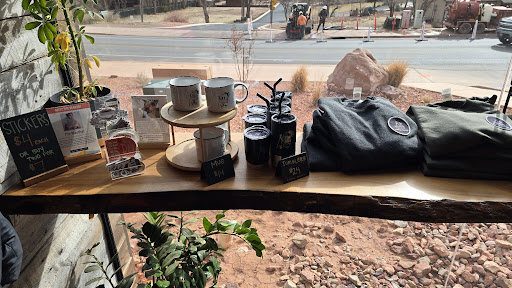 Excellent little coffee shop on the westside of Zion Park Boulevard, 0.5 miles from the south entrance to Zion National Park. There is plenty of parking on the south side of the shop – you will see signs stating you have 20 minutes of free parking for the shop. There are tables just outside on the patio to sit back, enjoy your coffee and take the breathtaking views directly in front of you. We believe there is an indoor place to sit upstairs above the shop, but we are not 100% sure of that. Inside the actual coffee shop, it is extremely small, so you will have to take your coffee to go or sit outside under the covered patio. Besides coffee and lattes, the shop offers other beverages, blended drinks and some baked goods. The shop does have a restroom inside, just in case you need one. We think the prices are more than reasonable and worth it for the quality of the product. We were quite happy with our selections and would recommend this place to others. But what made this special was the people (staff), super friendly, funny, and willing to engage their customers in conversation, not just taking their orders and sending them on their way. Kudos to the two baristas we met on Wednesday this week (around 1130 hours), just wish we had gotten your names...