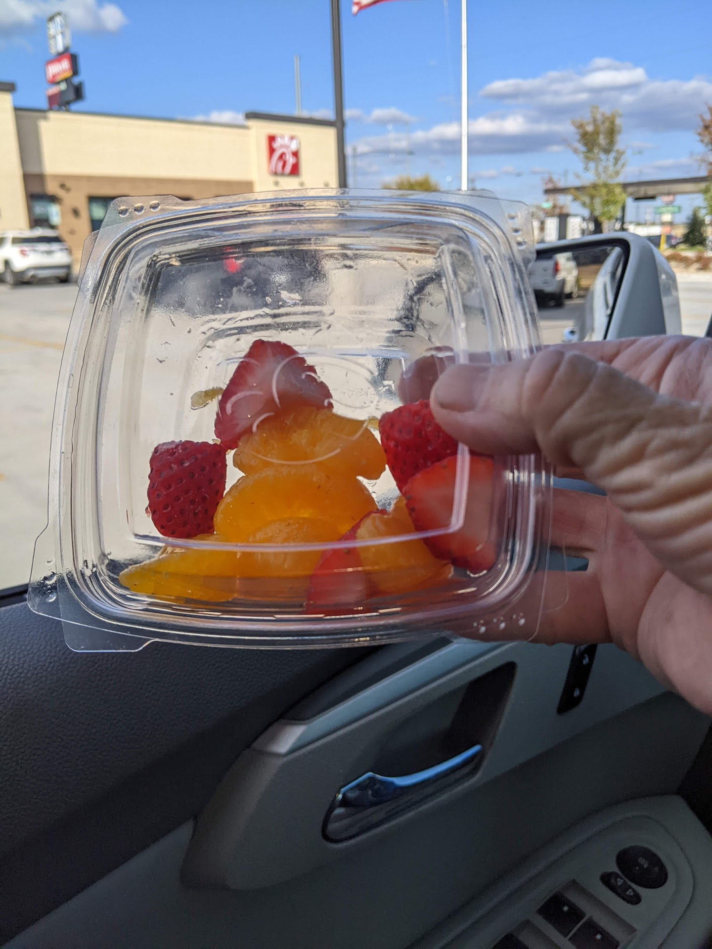 Read moreWhile waiting on my food an employee came out with my order but took it to the car in front of me instead. The driver in the car ahead took the bag and was looking through it and I guess realized it wasn't their order. So the employee then came to me and gave me it so I asked if that person just looked through the bag so the employee told me no. I then said well that's not true I just sat here and watched the person look through the bag. So she then asked if I would like a new order I said yes. So she took the bag, but instead of getting a new order they just switched the bag(I watched them).So now I can't believe they're insulting my intelligence. I said did you just change the bag and not the order so she said yes sorry it's my manager so I asked to speak to the manager so she came out and I told her the problem and she said she'll make a new order to just pull around in the parking lot. Once I did that she bought out the order but I knew they still didn't change it because the fries were cold. At this point I said whatever and just left. Came home took a bite out of my sandwich and boom there is a brown/gold hair strand! I was like okay maybe I'm tripping so I continued eating 3 bites later and boom another hair strand! At this point I'm completely livid, disappointed and over this whole chic fil a experience! I can't see myself patronizing that particular location ever again!! I've never experienced something this awful from chic fil a....