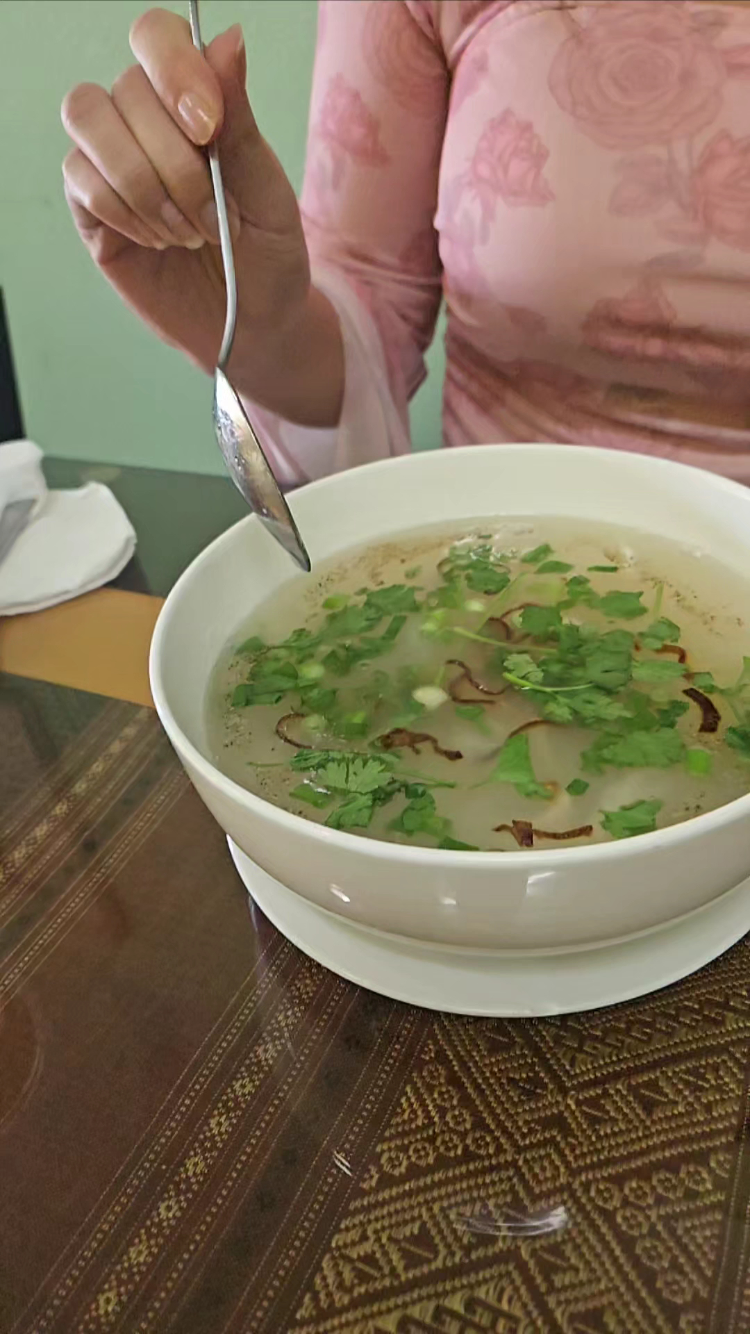 Khao piak sen Noodles were a good texture it flavorful and light. Not overspiced. It was a perfect noodle soup and was filling.