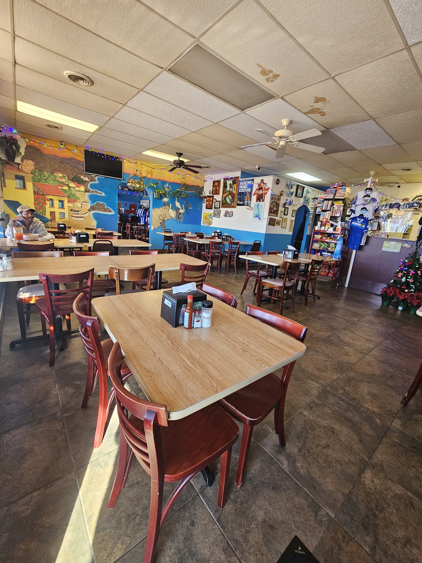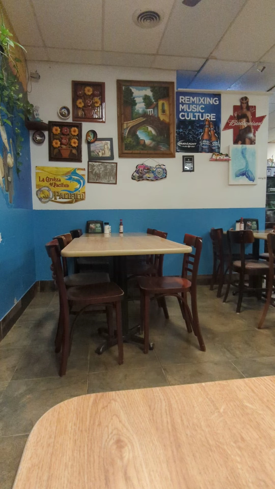 Let me start with the restaurant. They have ceiling fans but they're not running. The AC unit in the back room is set to 72° but it sure feels like 80 degrees in there. There is one glass door in the back room -which is always locked- that lets sunlight in for a good part of the day. It has no blinds. That's part of the reason it is so warm inside. As far as drinks go, if you want soda you are limited to soda in bottles. There are no refills. The main thing is obviously the food. Let me just say that the food here is below average. My dad ordered the fish -I think it was Tilapia- and he gave me some to try and I thought it was done very well. The pupusas are big and cheese is the main filling but they put enough of it in there but they are still a little bland. If you want better flavor choose Jalapeños and...