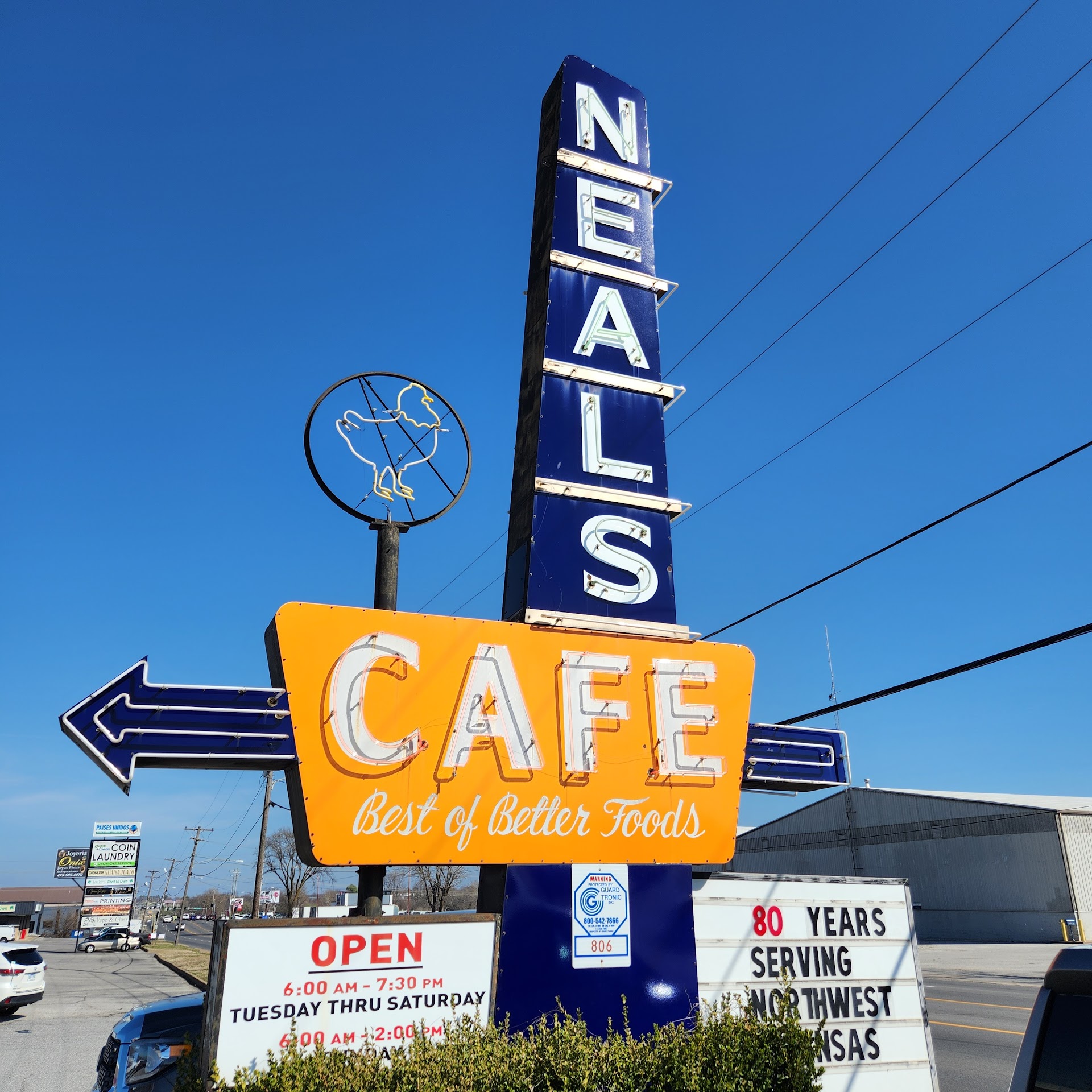 Read moreI went to Neal’s Cafe around 1pm looking for breakfast. I was highly disappointed when I found out that it was a café that did not serve breakfast all day. I looked at the menu to see if there was anything appetizing that I could have for lunch, nothing seemed appealing to me at the time. My step-son wanted to try the ham sandwich, so we decided to stay. I ordered some coffee that tasted like warm water. I asked for a slice of apple pie and they were out. I settled for a slice of blueberry pie. The scoop of ice cream was delicious. I got a little bit of crust and a big blob of blueberry filling that was way too sweet. About 15 minutes later, my stepson received his ham sandwich and fries. The fries were out of a freezer bag.The ham sandwich was pretty good.I’ve had better coffee at a gas station. The only time I saw our waitress smile is when she saw us leaving. There was a 3 1/2% fee for using a debit card or credit card, on top of the four dollar tip that we gave her. If management is reading this, don’t bother reaching out I will then we’ll go back. Northwest Arkansas is about to become gentrified with all the money moving in from around the country.If a place like Neal’s Café wants to survive they are going to have to step...