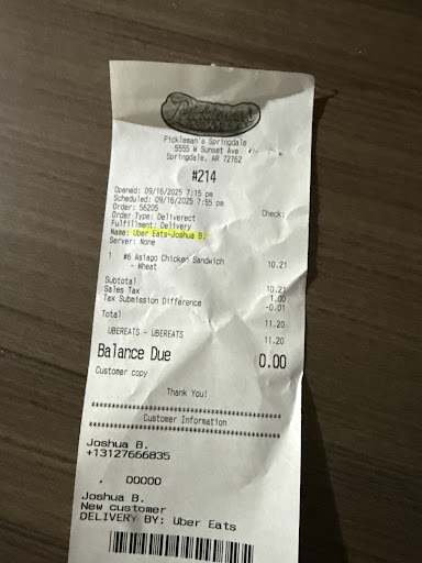 Read moreService was great they answered all my questions. They put romaine lettuce on my sandwich instead of iceberg. I ordered a turkey bacon with provolone. It had lettuce, tomato, mayo, and spicy mustard. My wife had a chicken salad sandwich. We both had the meal with chips and a drink. The chips are the kettle cooked ones. I personally don’t like them much at all. I only ate about a quarter of the bag. We both also got pickles on the side. My wife got a “whole” one and I got a “half” one. Hers was three tiny ones and mine was one tiny one. On top of getting pickles that were no longer than 3” we had to pay extra for them. The name of the place is Pickleman’s and you don’t even get a pickle with your sandwich. My sandwich was a full and it was only 8” and my wife’s was 4”. We also had 3 cookies and the total was $42.84. That’s $21.42 per person for a sandwich meal. It just wasn’t that good. It was ok and it did the job but not...
