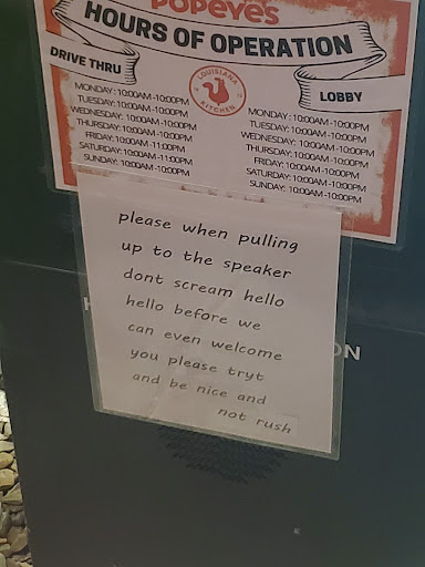 Read moreI've never had such appalling service. The restaurant closed at 11. We pulled in and tried to place our order at 10:25. Upon trying to place our order we were immediately informed it would take 10-15 minutes for our food. I said that's fine we will wait.The employee seemed disappointed that I was willing to wait. Next they told me that before they could even take my order that had to fill two other customer orders even though saw no one in front or behimd me. After my family of 5 was left waiting 15 minutes, i said "sir?" to the speaker (wondering I'd I had been forgotten about) and the man began shouting and wouldn't let me finish asking my question. He shouted "I ALREADY TOLD YOU TO WAIT!" several times over me; not letting me speak. He didn't even know what I was going to say. It's not right to leave someone waiting on you then be treated with such disrespect. It doesn't cost anything to be nice to someone. We decided to drive off and leave after 20 minutes and when we pulled around we could see there was only one other vehicle at the window. We had just sat at the speaker the whole time and no other vehicles around but the car at the window. I'm also attaching a photo of the sign that was taped to their speaker which seems as if they are attempting to drive customers away. I always thought the goal was to work for the customer and not the other way around. They laminated this important statement which is obviously not corporate approved and didn't even take the time to spell check it. It's sad. We will not be returning to this location and really hope management will take this review into consideration coming from a customer willing to pay money even after...