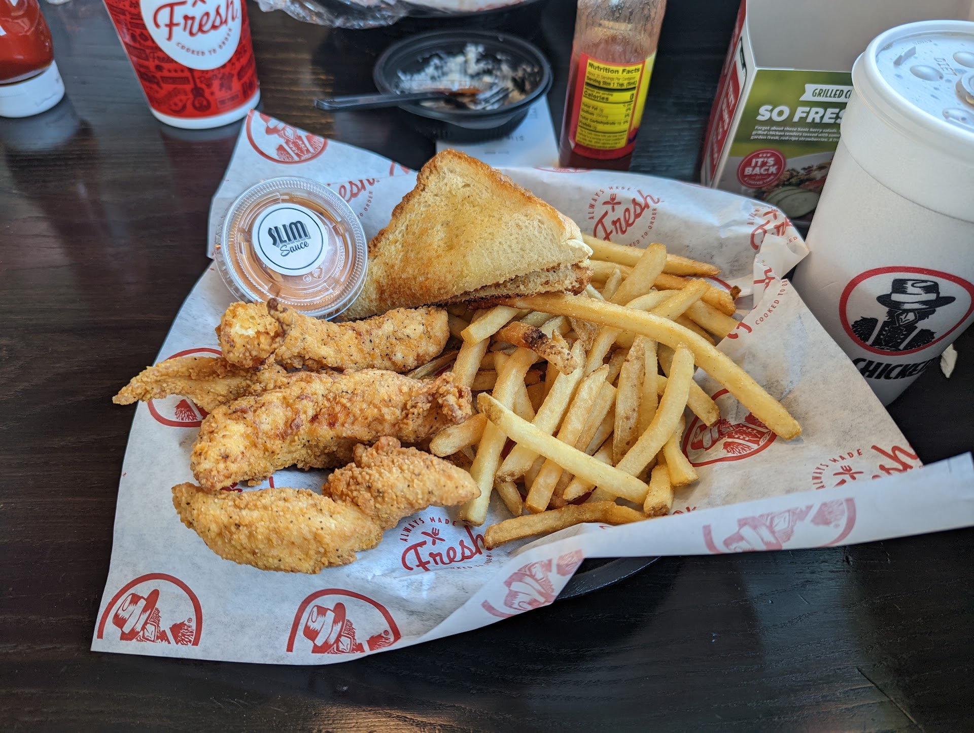 Read moreI like Slims, but I do not like this location. The food is good, but the service and the atmosphere are not good. We ordered food for pick up and actually arrived five minutes after the time given for pick up. I continue to wait another 15 minutes in the store. The waiting is not the only issue, however, the experience just feels very chaotic. The team behind the counter is yelling and running, and there is nowhere for guests to stand and wait for food. The team is nice but they continue to promise “you food is coming up right now” to no avail. They offered me a free brownie for the wait, however, the brownie did not feel sufficient. This is not a one time experience, every time I have been there the food has taken a lot longer, and it feels like a lot of chaos behind the counter and waiting for your order or waiting in line to order. I have been to other Slims for Sunday lunch and the experience is not the same. I will for sure take this restaurant location off my list, but it also creates pause before we would go to any other Slims, especially since there are so many chicken options in...