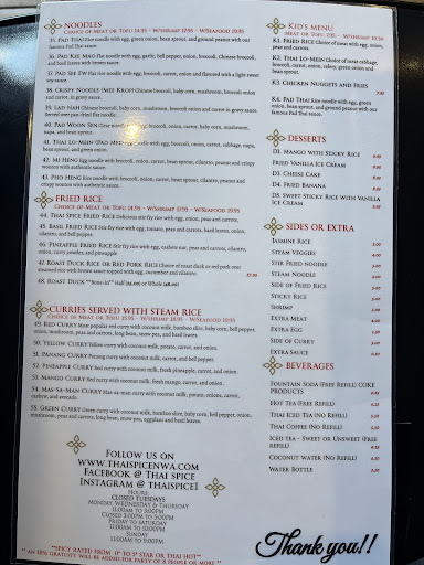Thai Spice is seriously amazing! From the moment we walked in, the staff was so friendly and welcoming—it felt like they genuinely cared about making sure we had a great experience. The food was incredible. Everything was fresh and flavorful. The Pad Thai was perfectly balanced, and the Yellow Curry had just the right amount of sweetness and spice. The vibe inside is really nice too—clean, spacious, and just a great place to relax and enjoy a meal. Whether you’re here for a quick lunch or a dinner with friends, it’s the kind of spot you’ll want to come back to.