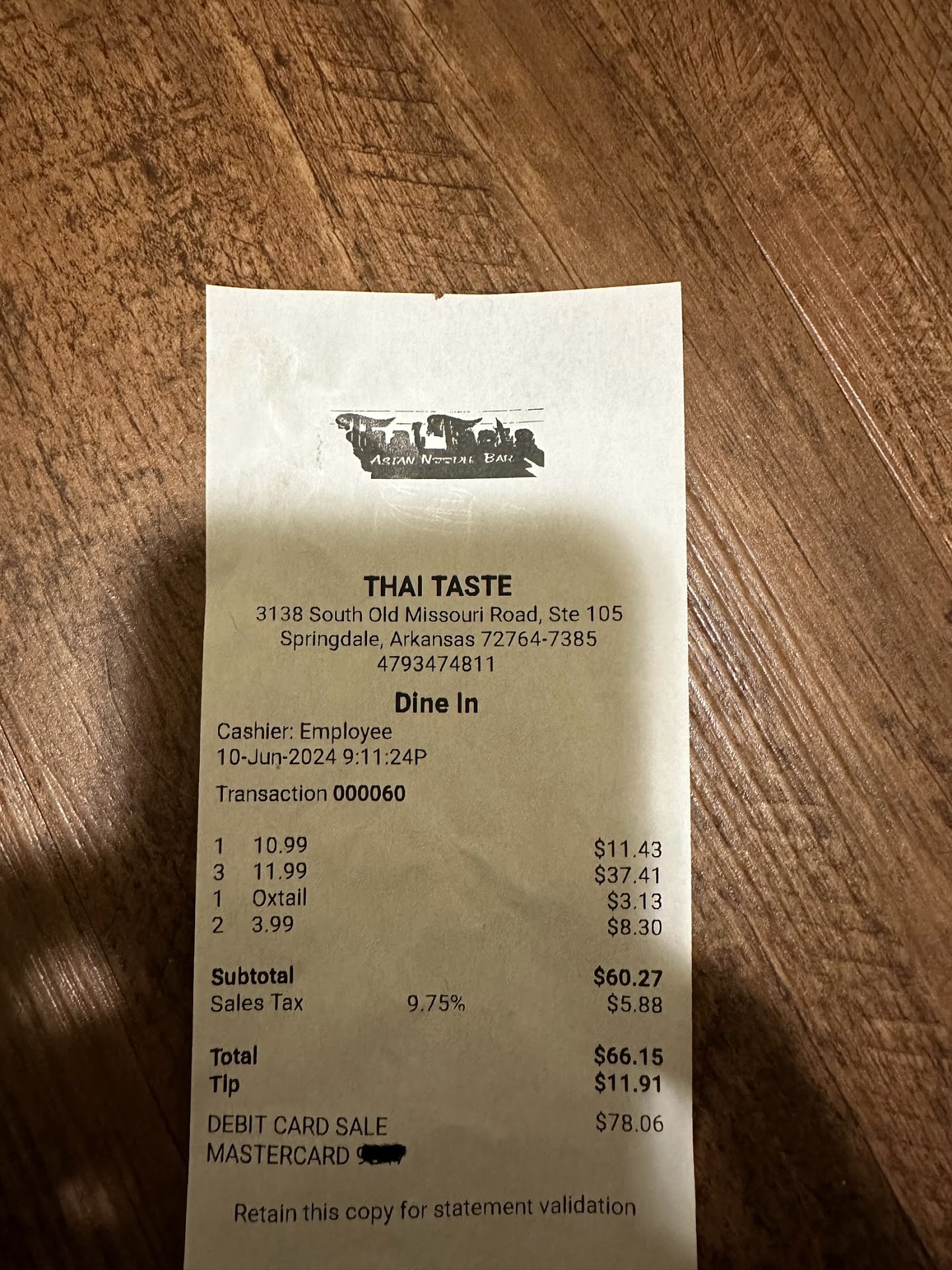 Read moreATTENTION everyone!!! Please avoid this place if you don't want to be charged TWICE for the tax! We ordered the foods here for dinner, the foods were ok, but when we checked out, they added tax on EVERY dish we ordered (more than $1 for every dish, the more you order, the more they charge for their made-up taxes) , then they combined all items, then add another 9.75% tax for the total. This is scam and illegal. When I asked the cashier, she avoided to answer and told me to call their POS company, this is ridiculous. When your customer asked for an explanation, you should have been able to explain instead of claiming for the POS company. Here is the copy of my receipt. $5.88 is not a big deal, but it is illegal to charge tax on every dish then add another tax for the total of the bill. If they do this to 100 people, they will get more than $500 for what they don't sell nor do. Please BE CAREFUL when you come to this dishonest business if you don't want to be charged TWICE...